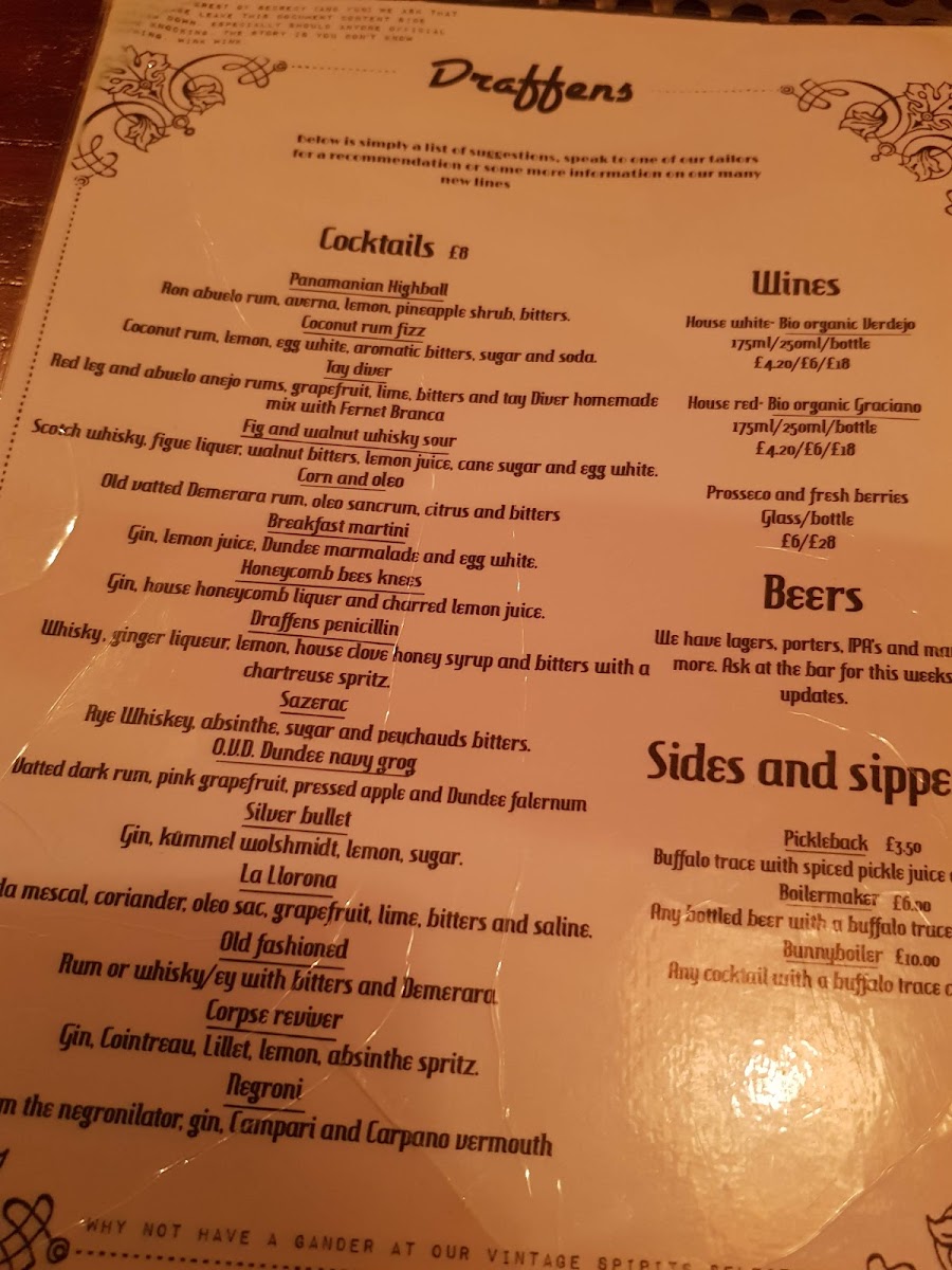 Tucked away in a discreet alley off Dundee’s city centre, Draffens is one of those rare hidden gems that effortlessly blends historic character with contemporary flair. The Draffens Menu reflects this duality, offering a sophisticated, ever-evolving selection that caters to both cocktail enthusiasts and discerning diners seeking something out of the ordinary.